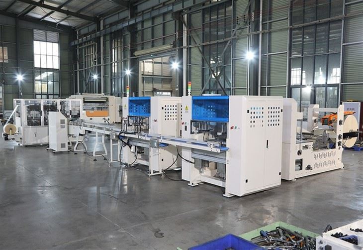 สายการผลิตเครื่องพับผ้าเช็ดปากอัตโนมัติเต็มรูปแบบประกอบด้วยเครื่องพับผ้าเช็ดปาก เครื่องพิมพ์และเครื่องย้อม และเครื่องบรรจุภัณฑ์ โดยใช้เทคโนโลยีขั้นสูงเพื่อให้การผลิตมีประสิทธิภาพและต่อเนื่อง